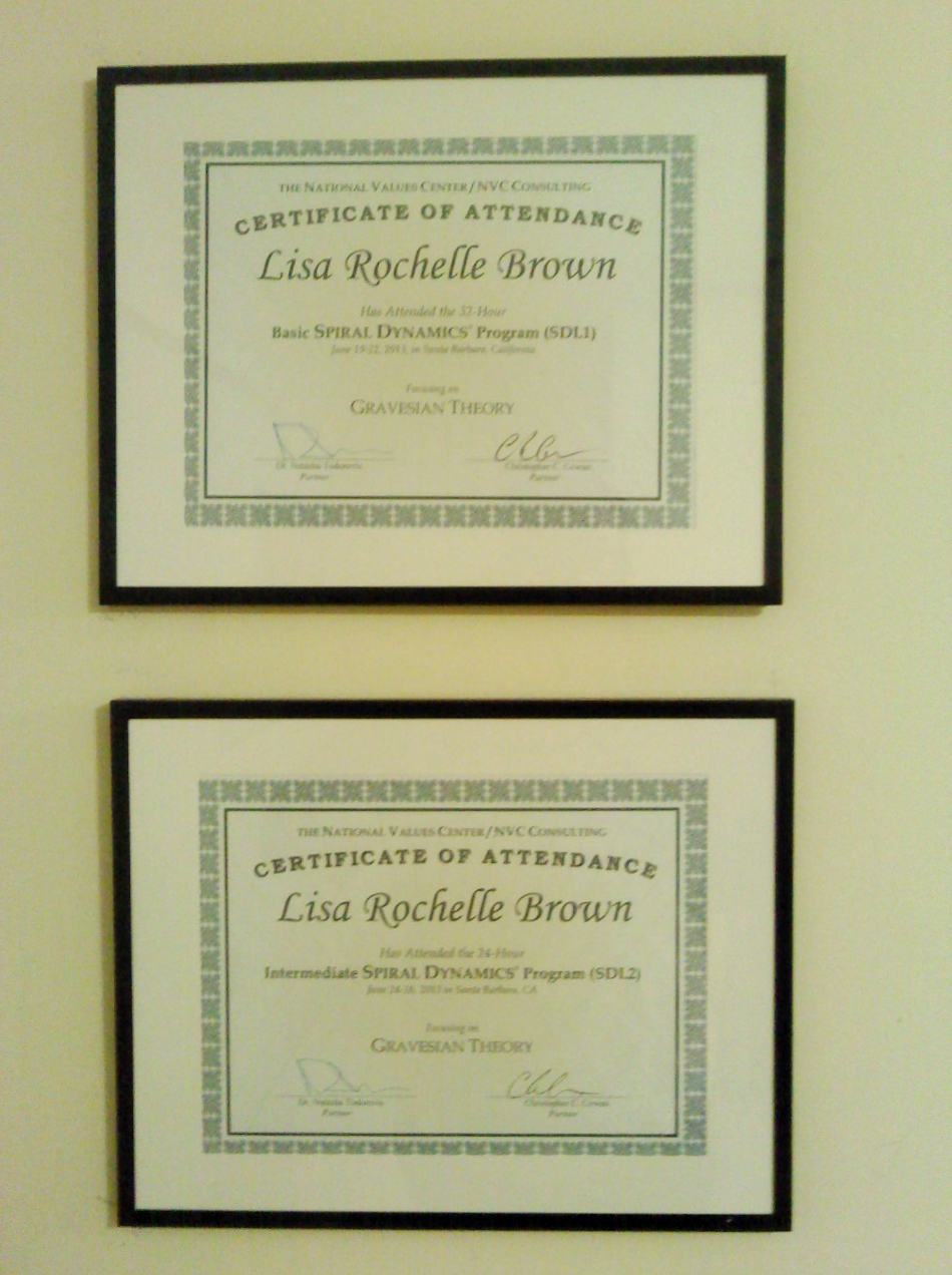 So I have completed my Spiral Dynamics certification training for Levels 1 & 2 and above you can see my certificates of attendance. Spiral Dynamic Theory (SDT) as a theoretical framework is being used in my research to examine levels of civic engagement within the complex contexts associated with public and private for-profit gradate-level adult learning. My research also explores the use of memetic science which is the theory and study holding that mental contents of culture operate analogous to Darwinian evolution. SDT is an open-ended theory based on the work of psychologist Clare W. Graves whose “emergent cyclical level of existence theory” (ECLET) held that as adults are faced with increasing degrees of life conditions and problems their worldviews are impacted such that they can respond to those problems through advancing biopsychosocial neurology. My research holds that Memes (the products of memetics) influence these worldviews and also influence adults existential realities.