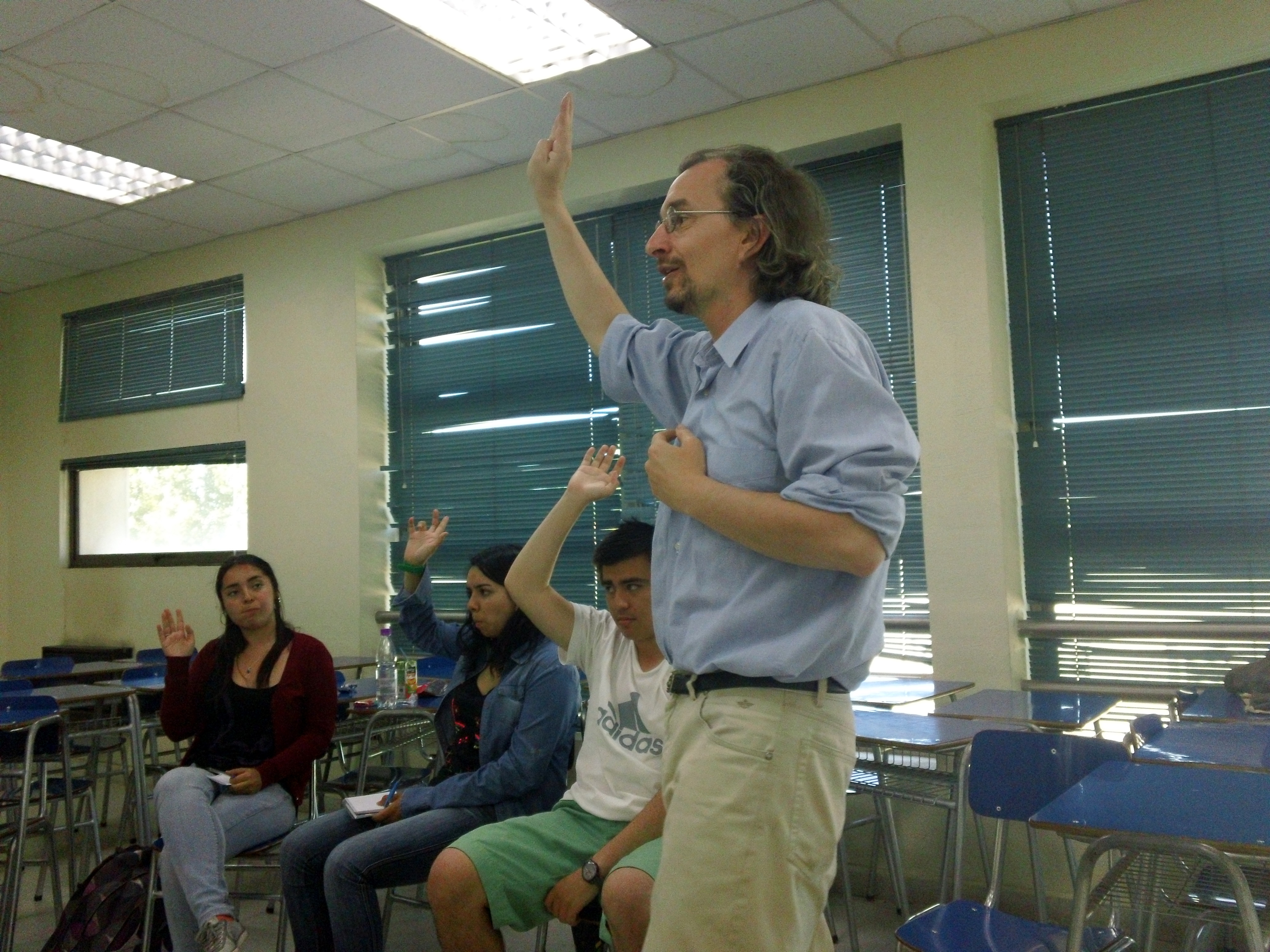 I was the guest lecturer for Professor Patrick Matzler’s class at the Universidad Católica del Maule. His students from the English Language and Intercultural Communication class today asked great question about international scholarship. Fue una experiencia buenisíma!! I also paid tribute to Micheal Jackson with my white footies and black shoes in this picture. Ha ha! 🙂