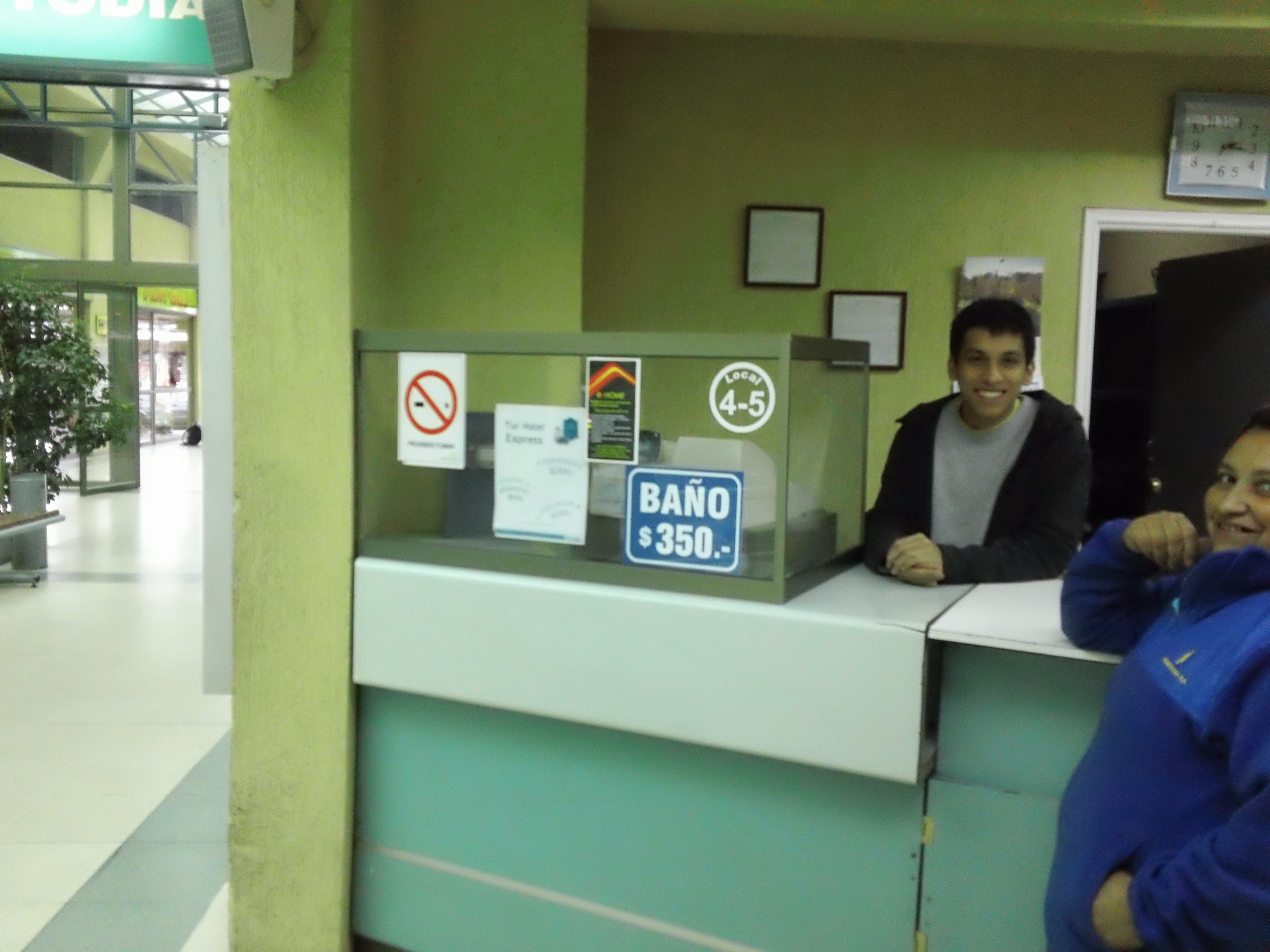 One of the biggest shockers to me when I initially arrived in Chile last year was that there were pay public toilets!! This one is in the Talca, Maule international bus terminal and you pay at this window. The folks were nice enough to take a picture for me. After paying they give you this weird piece of metal that goes into that slot on the right. It then allows the turn-style to rotate and you can then enter the bathrooms. This would never work in Cleveland or New York, ’cause I know people who would simple jump that gate unless there were police stationed around it. lol There are about 500 Chilean pesos to every $1 USD, so it cost a little over 50 cent to go to the toilet. But, I think there are also some baños (bathrooms) that are free, however my friend Camila told me, “You don’t want to use that one!”