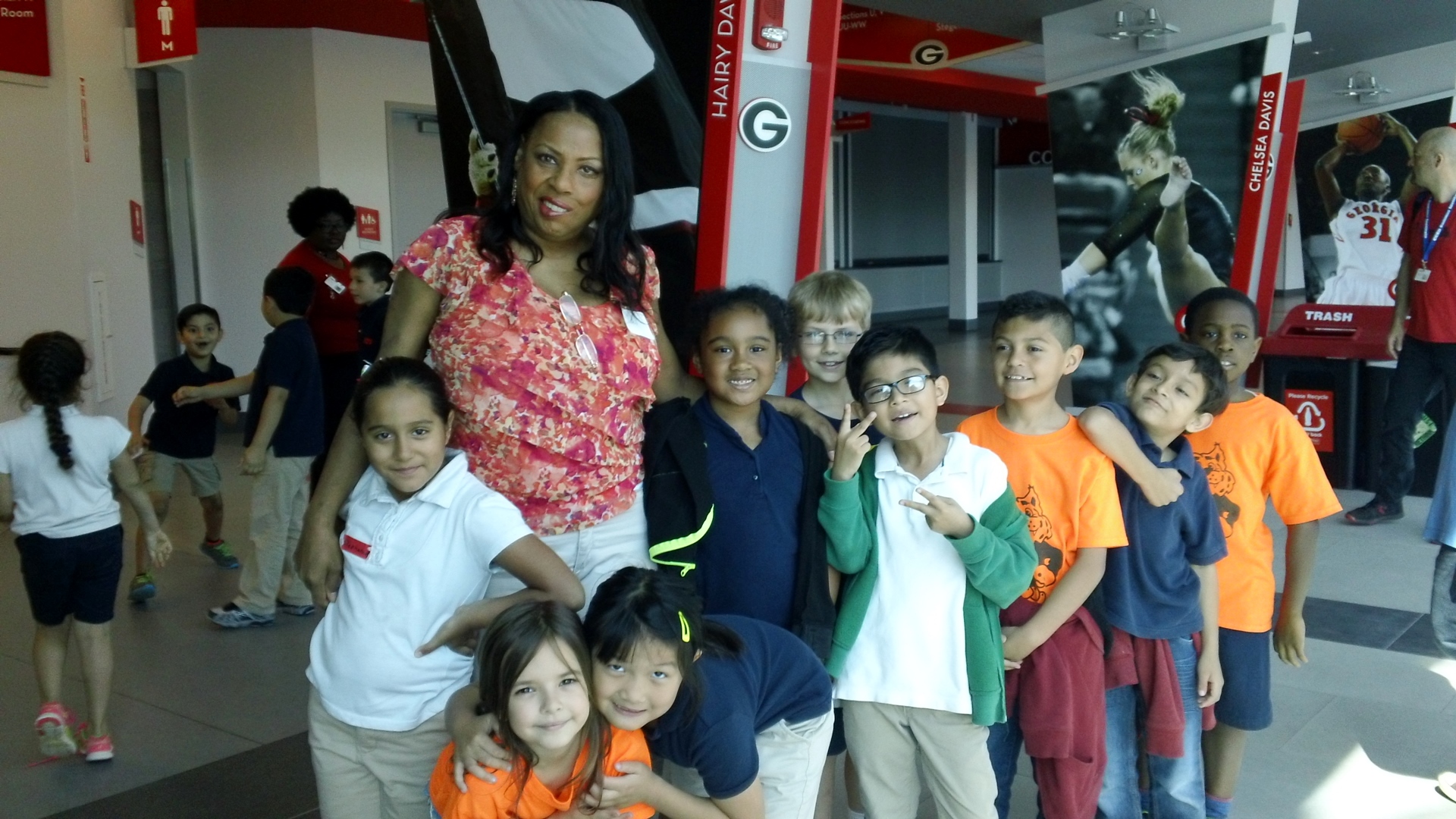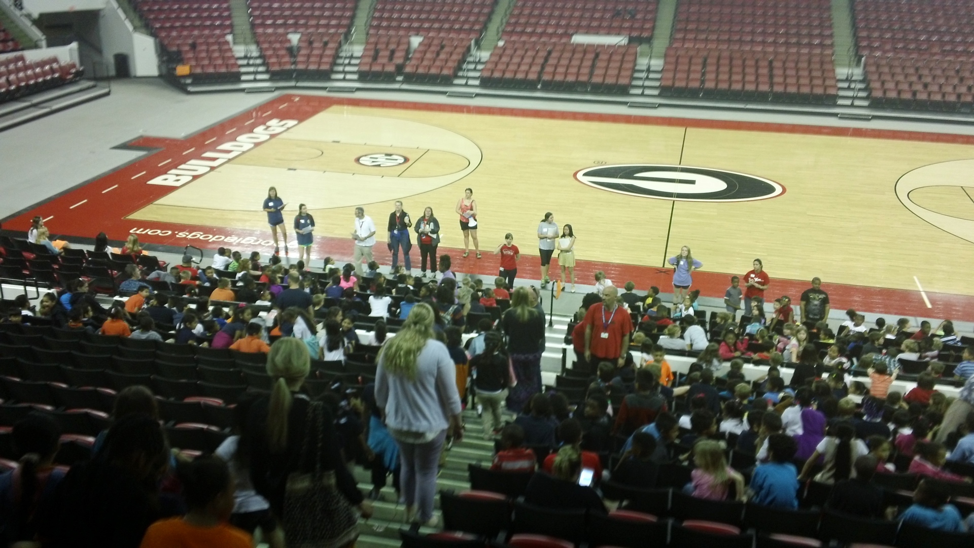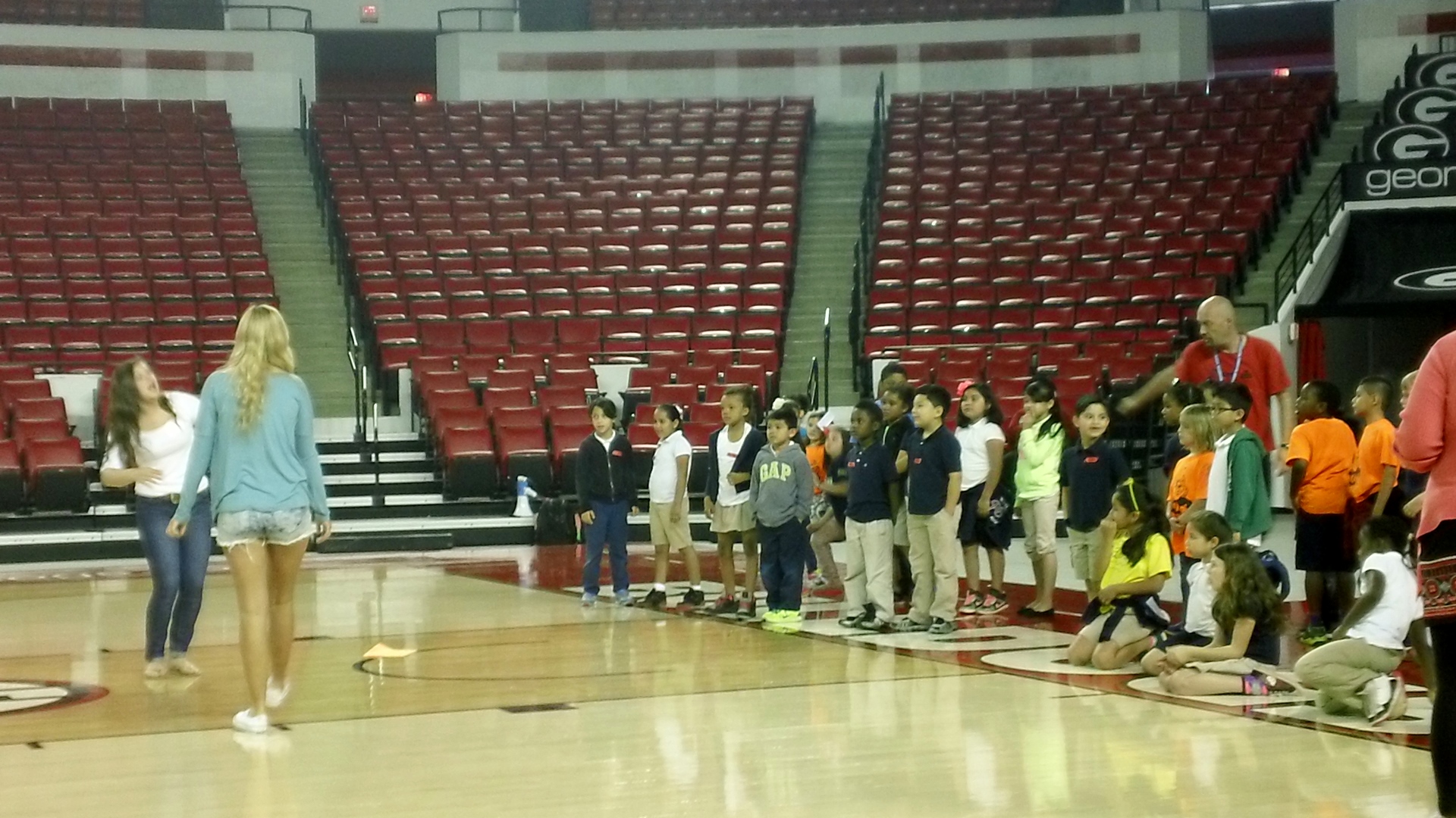 Teachers and students arrive to the Coliseum seating area to a surprising nonchaotic scence as hundreds of children, their teachers and the UGA volunteers provide instruction on the day’s itinerary. After which groups of second graders are divided up into groups of about 8-10 children as they tour the various stations set-up throughout the building.