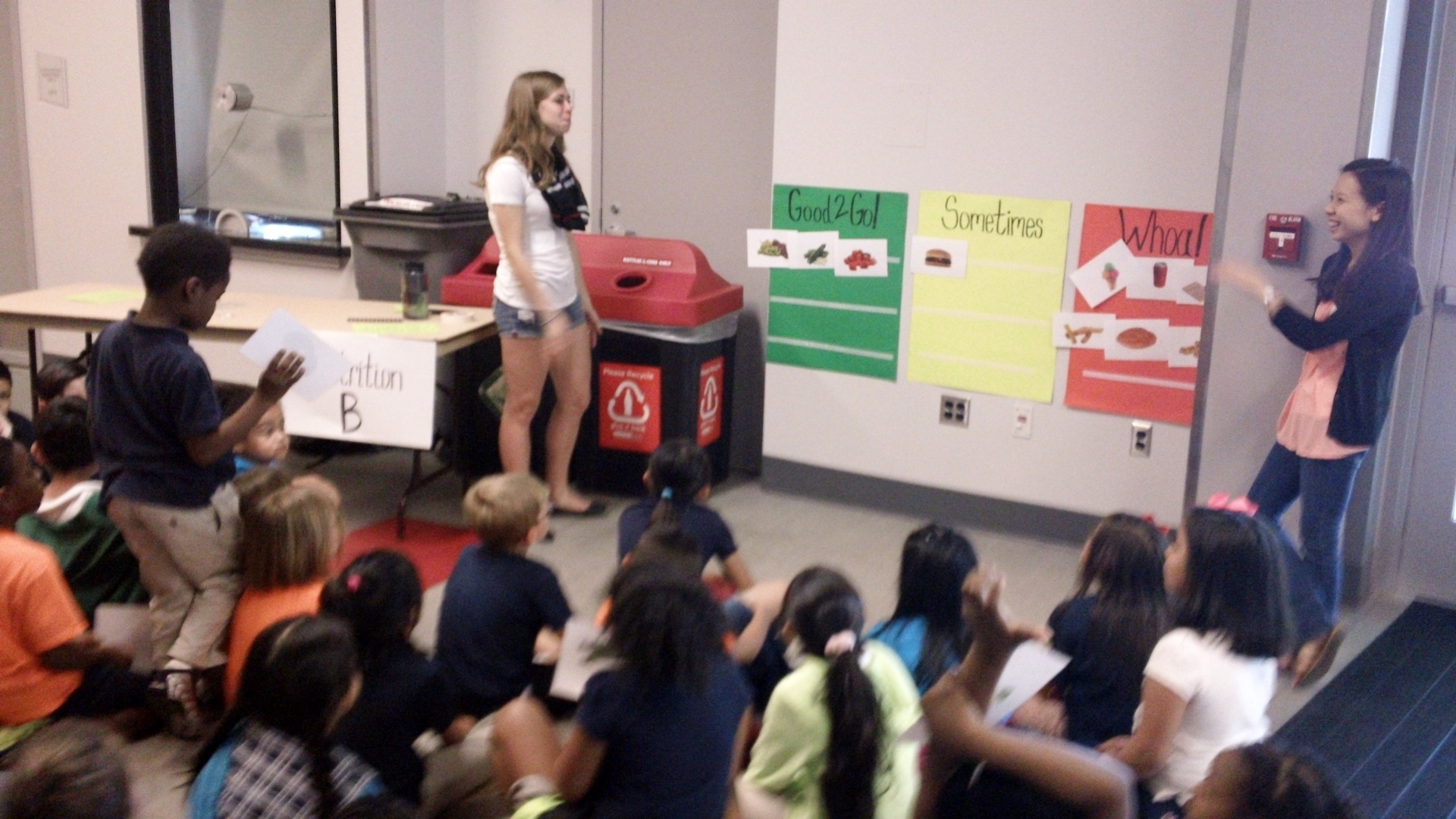 At this station the children were shown how to make healthy choice with regards to what they eat and how portion sizes can effect diet. They also where challenged to place “food cards” under the appropriate category. They had three categories to selection from: 1) “Good to Go!” foods, 2) “Sometimes” foods, and finally 3) “Whoa!” foods and how their intake should be minimalized.