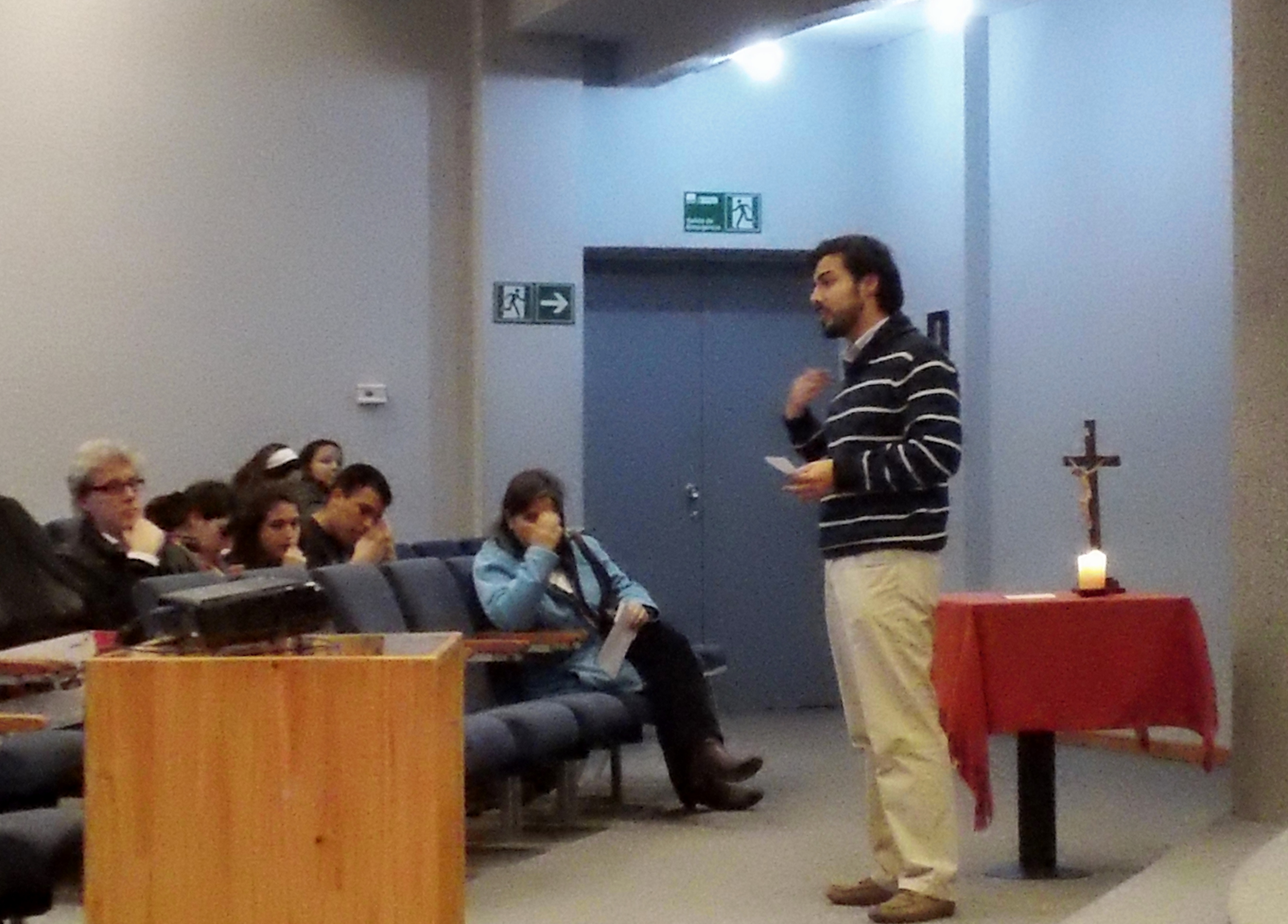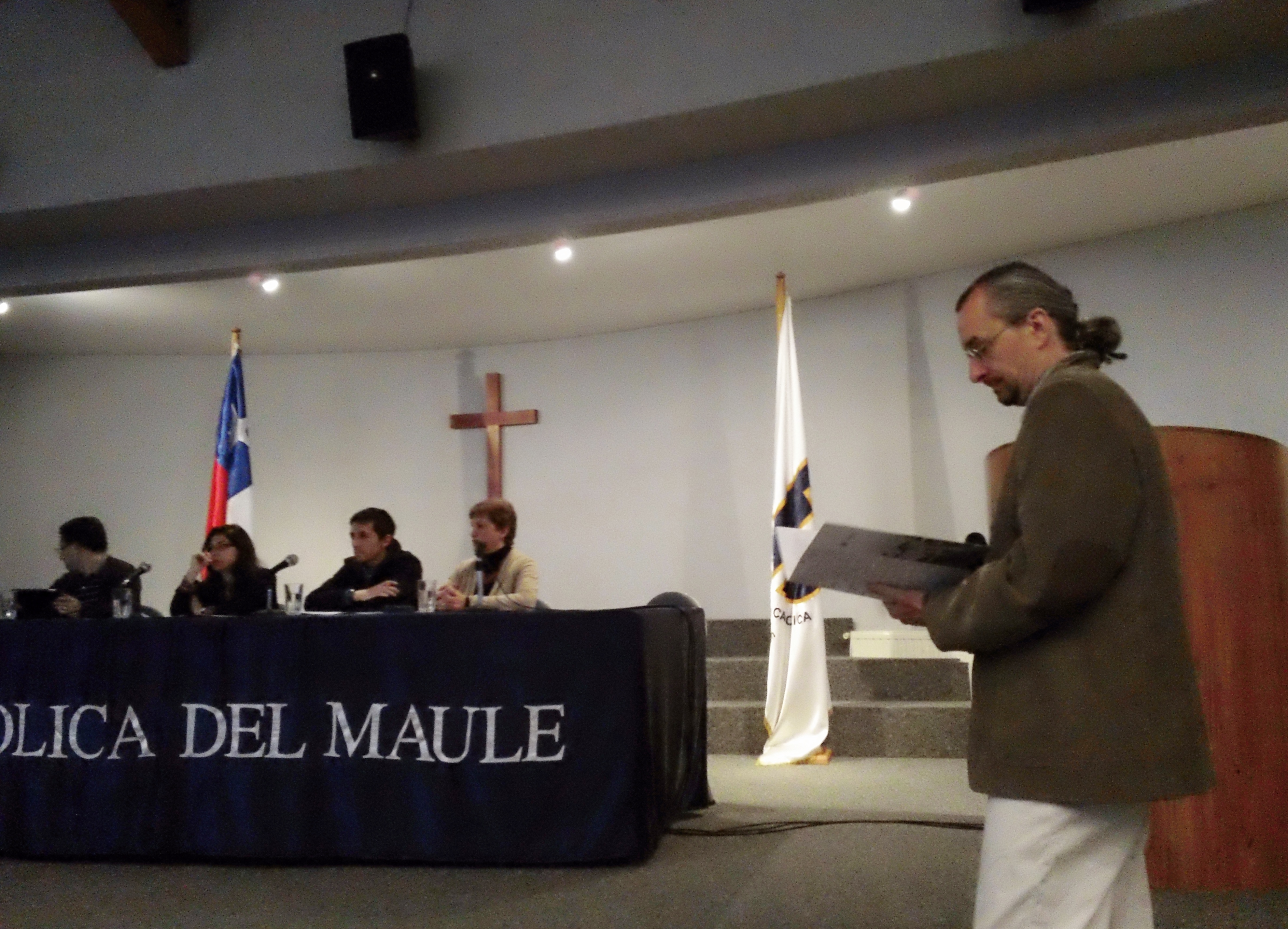 I had a very lovely meeting today with Sr. Patrick Matzler, who is Swiss and speaks English. Dr. Matzler is a professor on the faculty of the Instituto de Estudios Generales at UCMaule. We discussed my dissertation research and how I could assist with other scholarly activities there at UCM. Following out meeting he invited me to attend a Tertulias universitarias estudiantiles 2013.